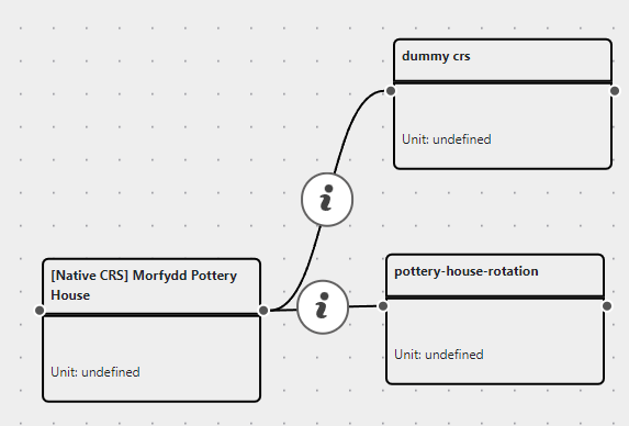 To create a CRS transform between 2 CRSs click and drag the mouse between the left/right nodes on each CRS: